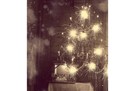 Avant l'arrivée des scintillantes guirlandes électriques, le sapin de Noël était illuminé avec d'authentiques bougies. Le résultat était certes très joli mais aussi quelque peu dangereux. Belgique - Décembre 1944 © Archive de Paul Hella - Galerie Photo L'Internaute